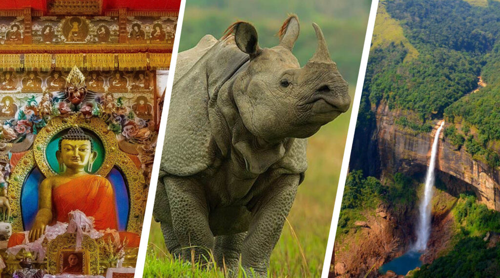 - Sightseeing – Covered attractions including: Guwahati: Kamakhya Temple, Umananda Island, Brahmaputra River Cruise Shillong: Elephant Falls, Shillong Peak, Laitlum Canyons, Don Bosco Museum Cherrapunji (Optional): Nohkalikai Falls, Double Decker Living Root Bridge